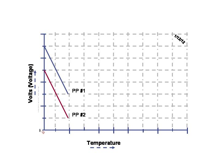 (a) Photovoltaic Panel #1 (PP #1) model equation: (volts) = -2.0 (temperature) + 2.5