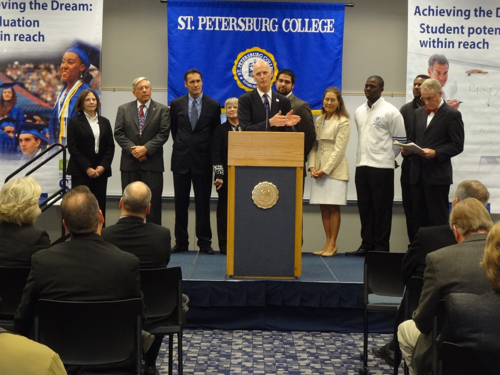 “Tallahassee, FL (AP) -November 26, 2012- Gov. Rick Scott wants Florida’s community and state colleges to develop bargain four-year degrees costing no more than $10,000. Scott made his proposal Monday in the form of a challenge before an audience of elected officials and college and community leaders at the Clearwater campus of St. Petersburg College.