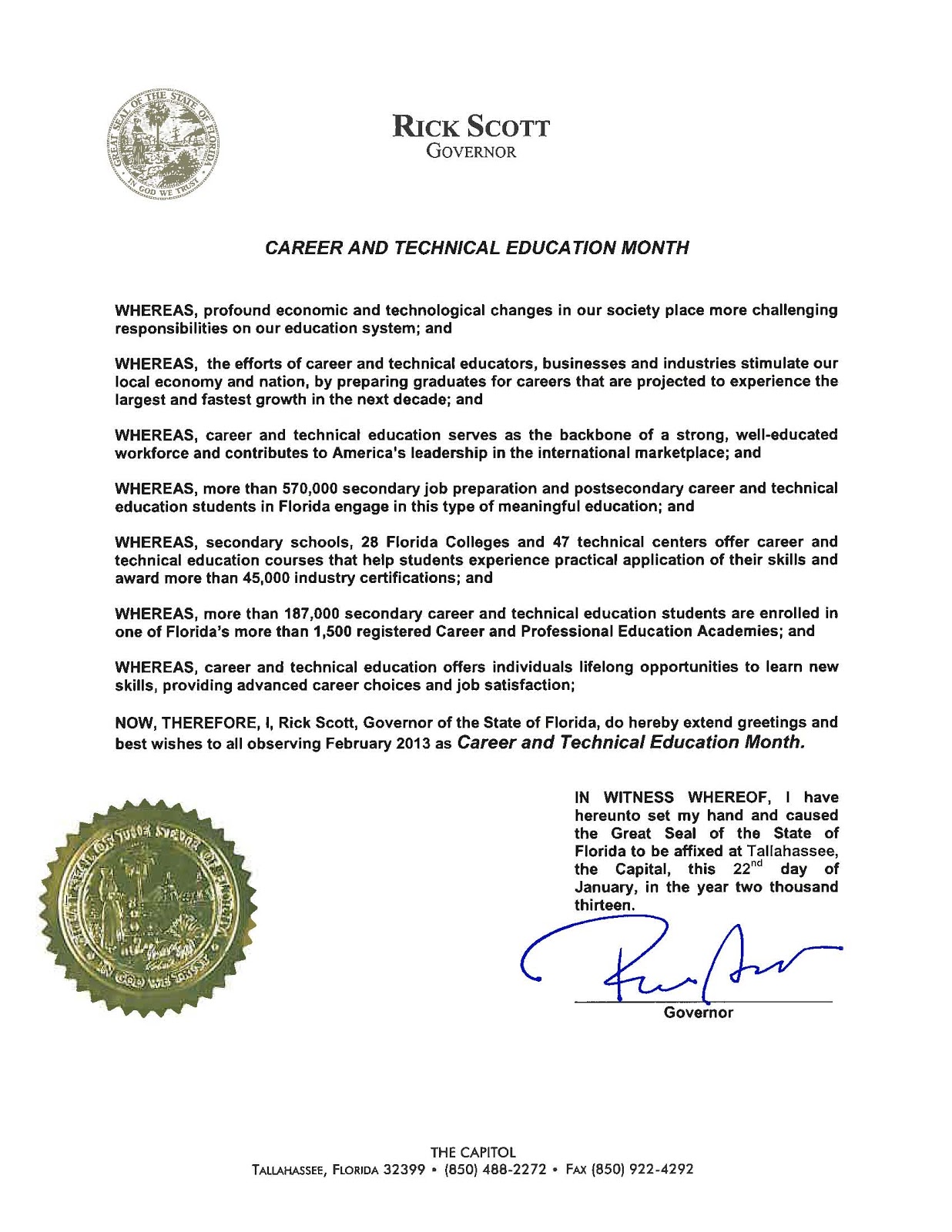 Proclamation Signed by Gov. Rick Scott (Click to view larger image)