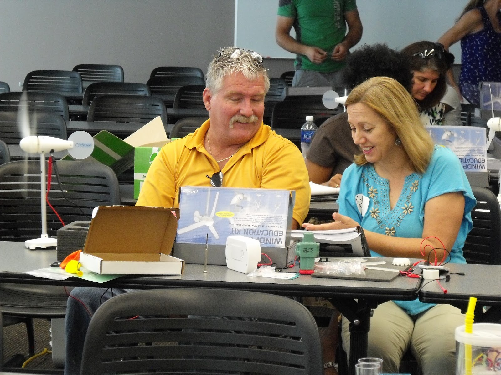 energy monitoring (REM) exercises, powering motors with solar panels, assembling and testing wind turbines, hydro fuel cells, and battery powered water electrolysis. Teachers were busy in teams of two building, testing, and optimizing performance of solar panels, windmills, and hydro cars. Teachers commented throughout the day that it was very useful to be able to touch the materials and build for themselves the same items that students using the Kit would be learning about, “being able to use the GREENtech Kit was very valuable [since] I was able to see the extension of activities.” STEM teachers (and those who wanted to integrate STEM into mainstream curriculum) ranged from elementary to high school levels, but all (100%) of teachers attending the camp agreed that the GREENtech Kit was a highlight for this year’s camp and that they learned something new in the area of green technologies that they would be able to use in the classroom.