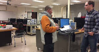 My second visit was to Virginia Western Community College (VWCC) located in Roanoke, VA. The mechatronics degree at VWCC was started by and still let by program manager Dan Horine about ten years ago. The program has grown to well over 100 students and has attracted a number of manufacturers to the region. After visiting the mechatronics, computer aided drafting and “Fab” lab, I was lucky to observe the following required mechatronics systems course: ENG 105 – Problem Solving in Engineering Technology: